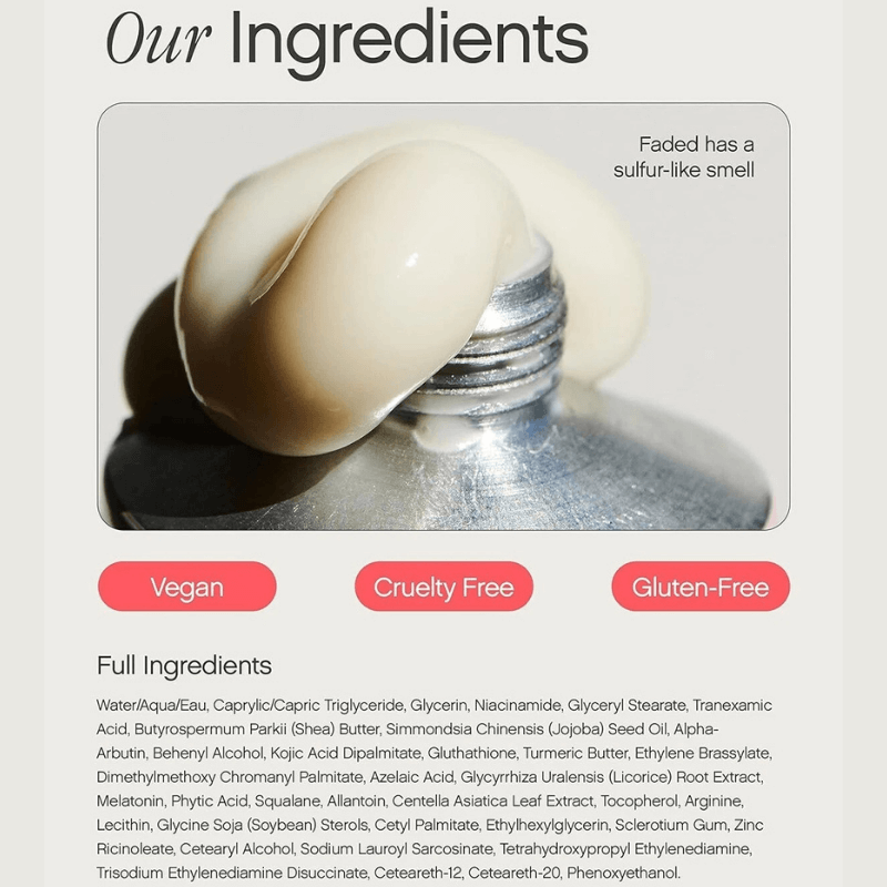 With big hitters like niacinamide, azelaic acid, and tranexamic acid, mixed in with skin-soothing and moisturising ingredients like liquorice root extract, Cantella Aiatica leaf extract and glycerine you can be assured that the result driven topicals in this cream come balanced with all the goodness your skin needs to heal and become its best version of itself. Top that with a mix of alpha-arbutin and kojic acid to inhibit pigment production, and antioxidants like glutathione, melatonin, and turmeric root extract and you have the perfect mix of active and restorative ingredients. You can see why it is loved by thousands not just in Australia but globally!